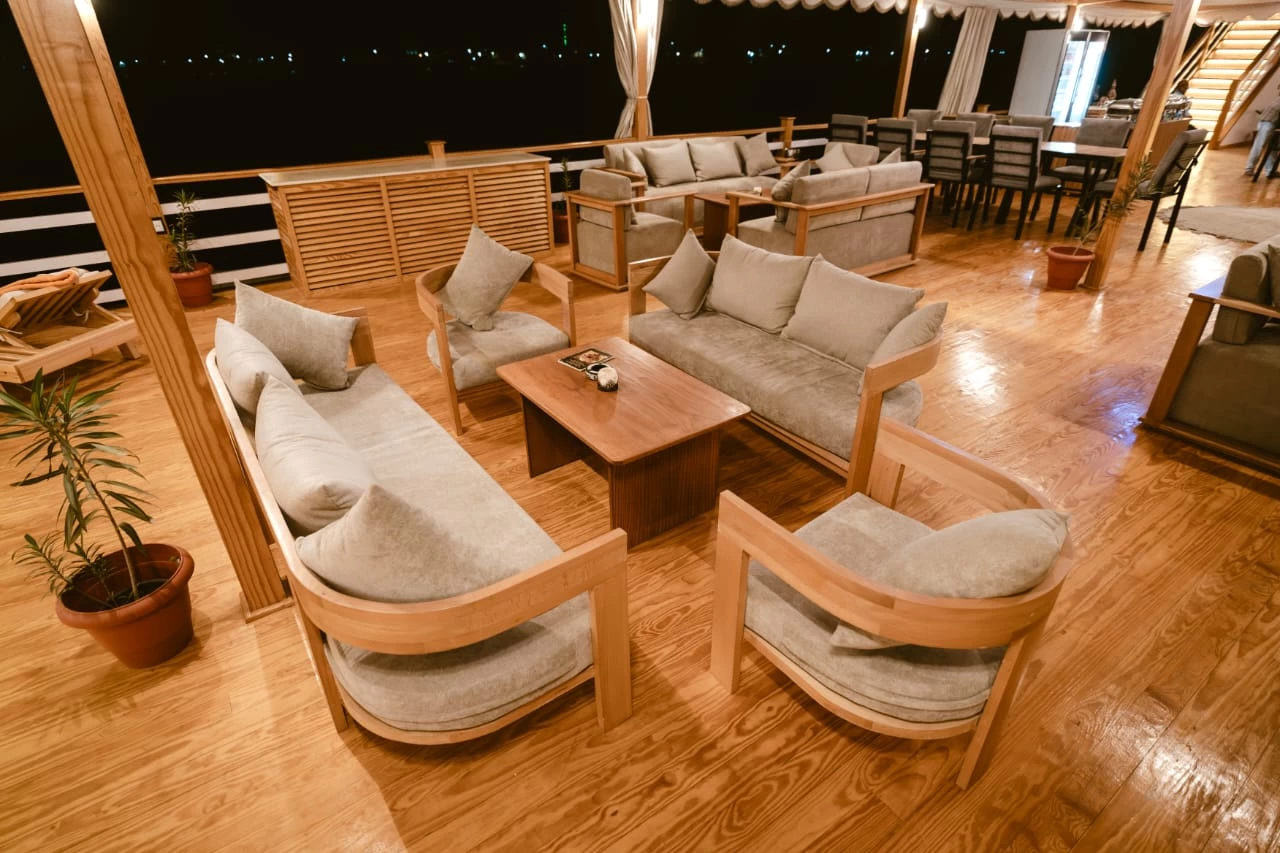 Envie d'un voyage alliant luxe, intimité et confort moderne ? Contrairement à la plupart des dahabiehs traditionnelles, le Swan offre des prestations modernes, dont un jacuzzi/solarium, un centre de yoga, un salon intérieur et un restaurant à bord.