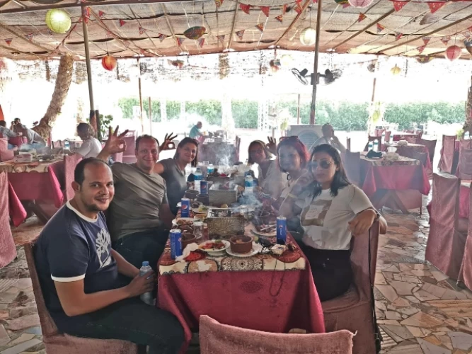 После этого мы отправимся на прогулку на парусной лодке или фелуке - приятное и расслабляющее времяпрепровождение на красивой реке. На лодке вы можете отдохнуть на диване, наблюдая за закатом солнца на каирском небе. Вы также можете фотографировать зелень вдоль берега реки. Вы также можете насладиться свежим речным бризом.