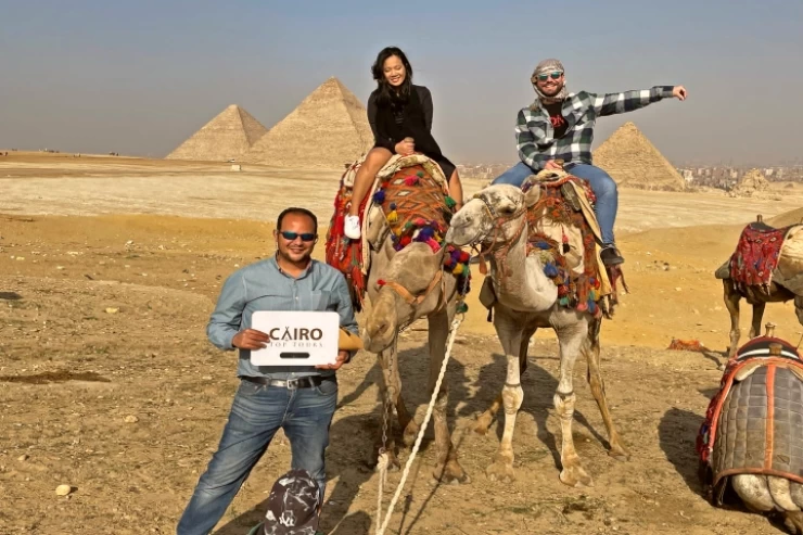 Al principio , comenzaremos con la visita de Las tres Pirámides de Giza:una para el rey Khufu (la gran pirámide) y las otras dos para Khafre y Menkaure. Así como tendrá la oportunidad para visitar la Gran Esfinge con su estructura mágica de cabeza de hombre y cuerpo de lión .También podrá montar en un camello disfrutando de los paiasajes agradables rodeados .