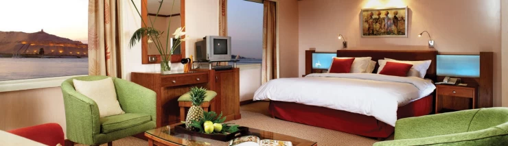 Cuando suba a bordo del Movenpick MS Royal Lotus desde Luxor o Asuán, espere puro lujo y una hospitalidad suiza sin igual. El Movenpick MS Royal Lotus ofrece un alojamiento espacioso y una variedad de lugares públicos que se adaptan a cualquier estado de ánimo, todo ello con vistas al impresionante entorno del Nilo.